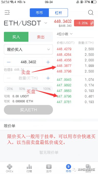 就当前来说,不通过科学上网就可以用得大交易所主要是由:币安、火币、OKEx、gate.io 用okex举例: 登陆okex得官网或者下载app,注册账号,婢妾通过实名认证,需要手持身份证。 然后点击“法币”,法币就是用人名币购买usdt(对标美元,汇率和实际人民币兑美元的汇率一样实时浮动)然后点击一个商家,输入你需要充值的金额,点击确认后会显示商家的银行卡或者支付宝账号,你直接转账获取,需要备注订单号的一定要备注,一定要注意:如果你用别人的银行卡或者支付宝账号是无法完成此交易的,一定要用自己的银行卡或者支付宝账号。 转账后,一般一分钟左右usdt就会打到你的法币账户,要想买数字货币这是就需要把法币账户的币划转到币币账户。 然后搜索你要买的数字货币,比如ETH,点击行情找到你要买的币,点击进去,然后点击购买,进入到ETH的购买盘面。 盘面上一般都是分为两个,上面个是卖盘,下面个是买盘。卖盘指的是想卖出ETH的人在上面挂的单的价格盘面,买盘指得是想买入ETH的人在上面挂的单的价格盘面。 买入和卖出都是分为两种,限价交易和市价快速交易,限价交易价格可以自己输入,而用市价交易买入数字货币时候,成交价是当前卖盘的最低价格,相反的,用市价交易卖出数字货币的时候,卖出价是卖盘的最高价。 买到了币是到了币币账户,如果想提现到钱包里面,就需要把币划转到我的钱包,点击提现选择币种,添加提现地址(提现地址就是你的之前imtoken钱包的一个42位的数字和字母组合,一定要复制,自己输入容易出错,那样币就无法找回来了) 通过提现币就会到钱包,但是也要注意看钱包支不支持这个币,不支持就不要提到这个钱包。不过不放在钱包就放在交易所也是可以的,看你怎么决定。  。